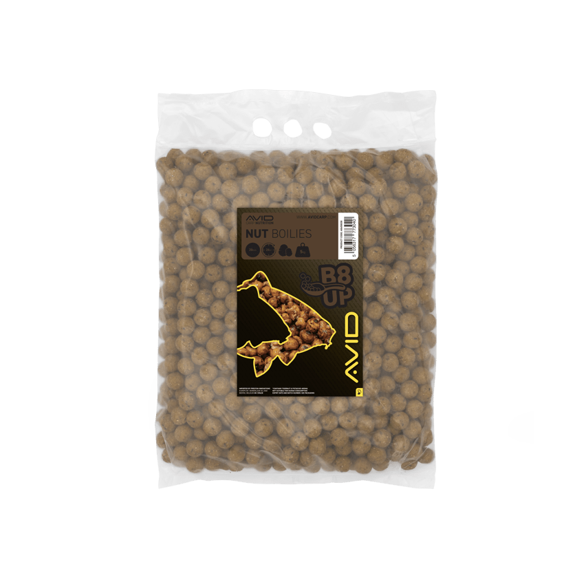 Boilies značky Avid Carp, řada B8-Up, příchuť Ořech, zejména pro lov kaprů.
