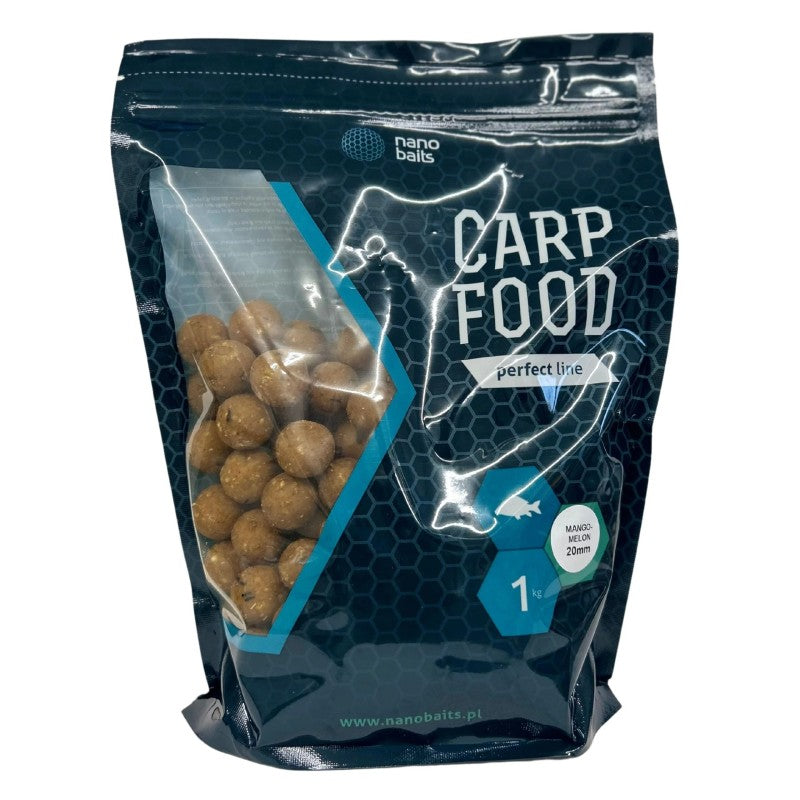 Sáček Boilies značky Nano Baits, příchuť Banán, na Barva hnědý, z 20 milimetrů, zejména pro lov kaprů.