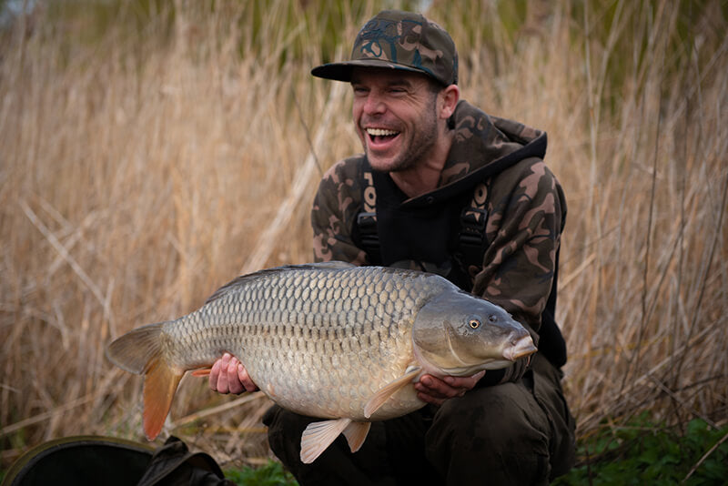 Značková čepice s plochým kšiltem Fox model Snapback s designem maskovacízejména pro lov kaprů.