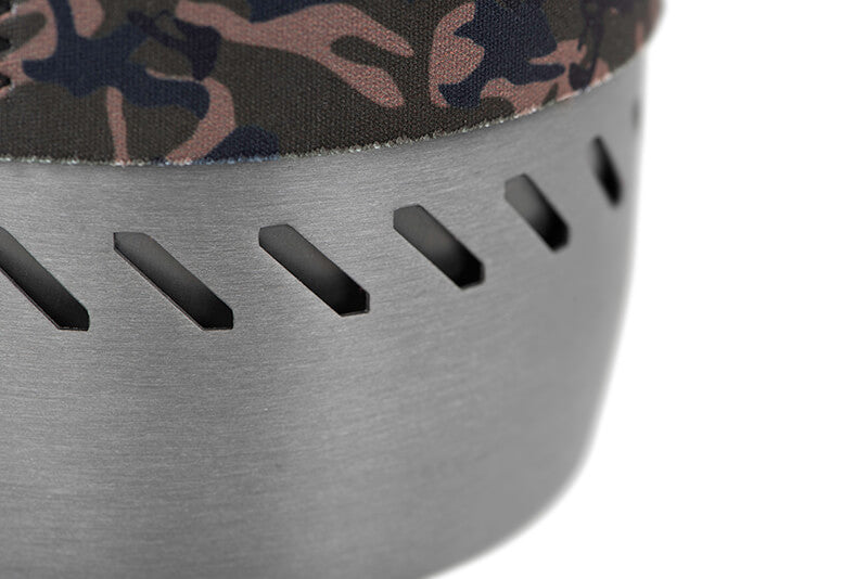 - Součástí je neoprenový návlek v barvě Camo, který může zůstat na pánvi