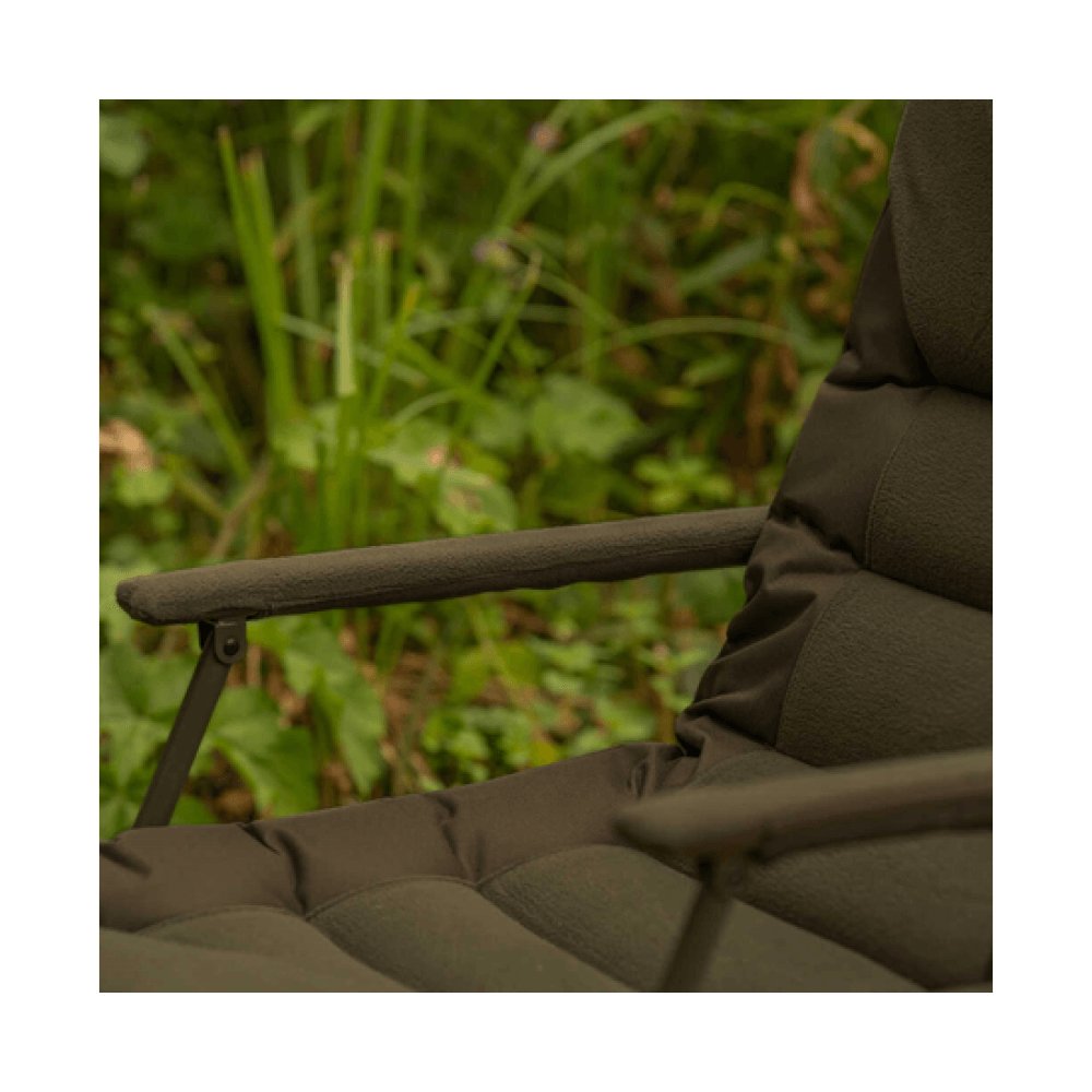 Židle značkové lehátko Avid Carp model Benchmark Leveltech HI-Back v barvě zelenáspeciální pro lov kaprů.