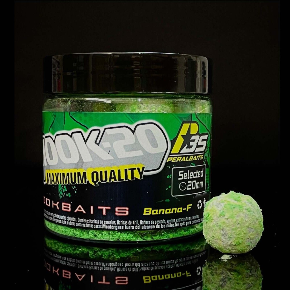 Boilies vybraná značka Peralbaits, příchuť Banán jahoda z 20 milimetrůzejména pro lov velkých kaprů.