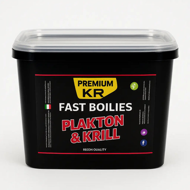 taška boilies značkově rozpustný Krom Quality, příchuť Plakton & Krill, od 20 milimetrů, zejména pro lov kaprů.