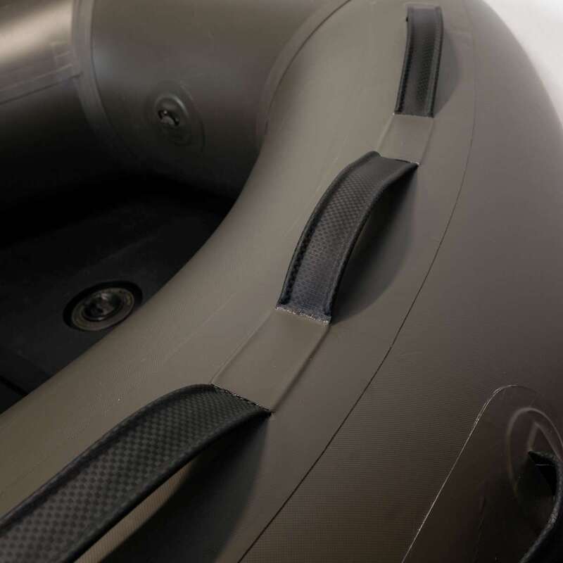 Kompaktní loď značky Raptor model 270 X-Wide s hliníková podlaha na adrese Barva zelená, zejména pro lov kaprů. Konstrukce vhodná pro použití v menších vodách a rychlých relacích.