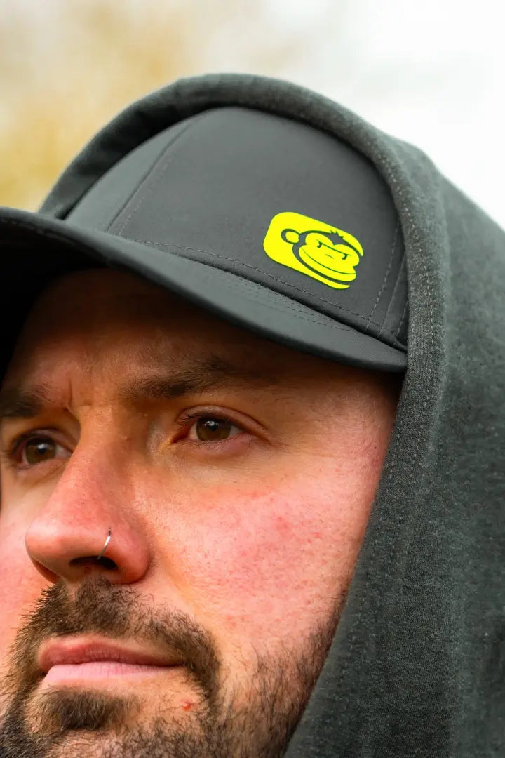 Klasická baseballová čepice značky {Ridge Monkey model Apearel. SportFlex v tmavě šedém Barva provedení se žlutým logem na přední straně.