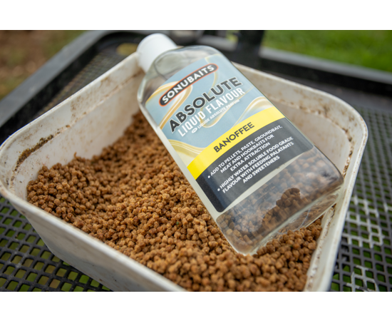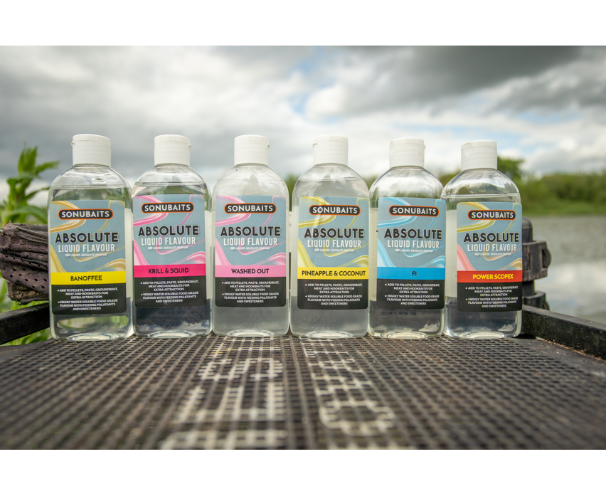 Tekutina značky Sonubaits, řada Absolute, ideální pro vylepšení vašich kaprařských nástrah.