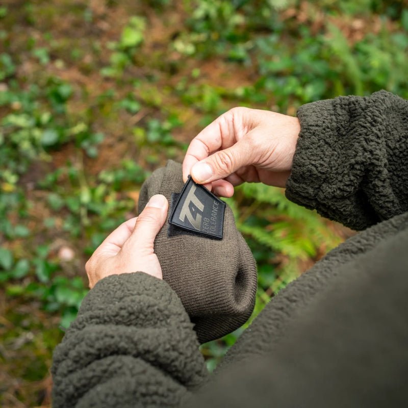 Značková zimní čepice Nash, model ZT Záplata, na adrese Barva zelená s logem Nash logo na Barva černáspeciální pro lov kaprů.