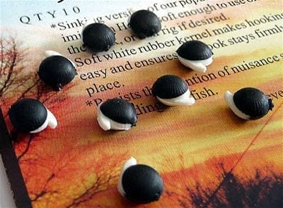 Tip Na malý háček, např. velikosti 18, použijte jednu kuličku, nebo můžete na vlas navléknout několik kuliček tak, že měkkou kuličkou protáhnete jehlu s nástrahou. Vztlak korálků částečně vyrovná hmotnost háčku. Orientačně 10 zrnek vyváží háček velikosti 10.