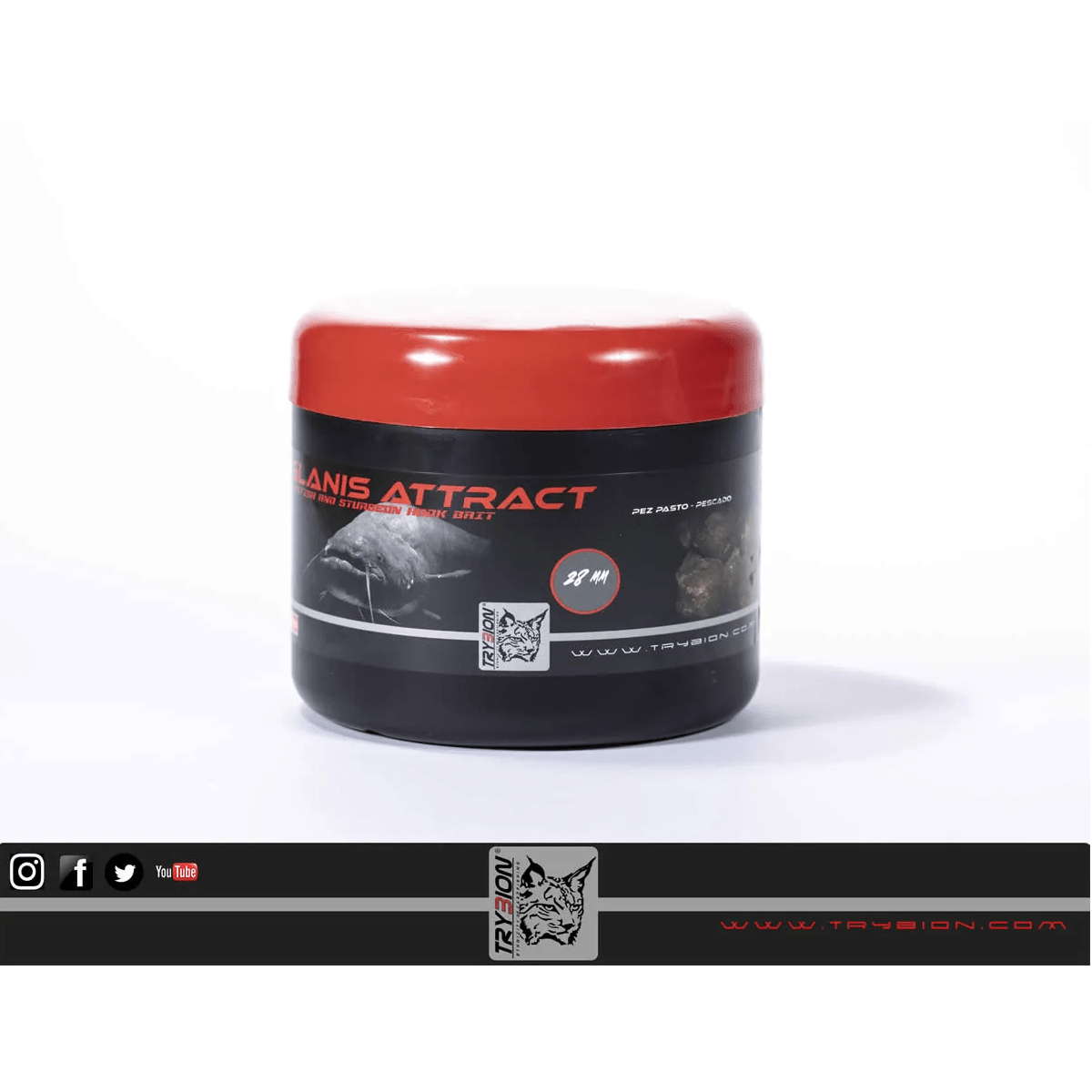 Boilies značky Trybion, příchuť Glanis přitahuje, zejména pro lov velké zvěře.