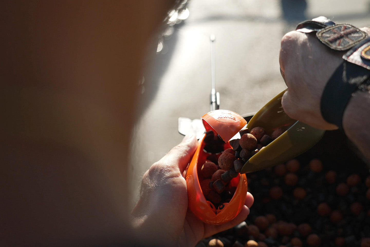 Spyder bait rocket, model Medium Orange/Black, zejména pro vnadění ze břehu při lovu kaprů.