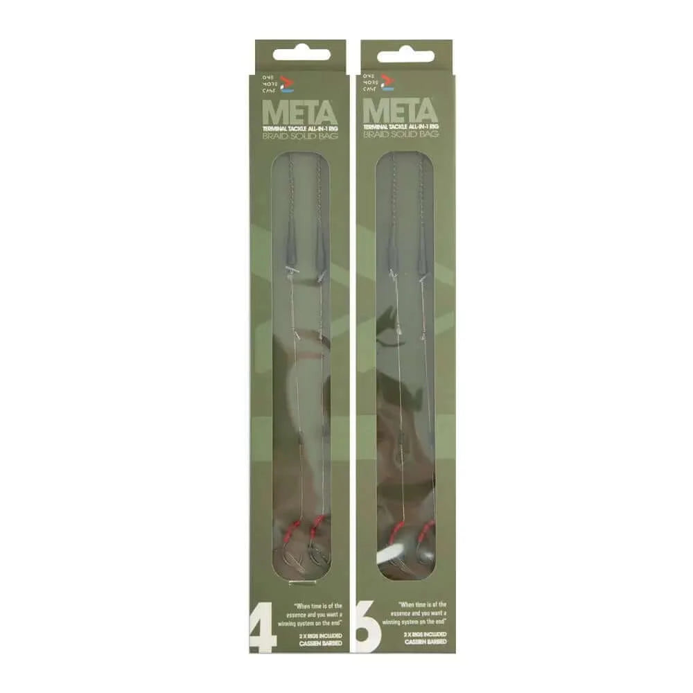 Háčky namontované na značce OMC model All-In 1-Rig 4, zejména pro lov kaprů. K dispozici ve velikosti 4 a 6.