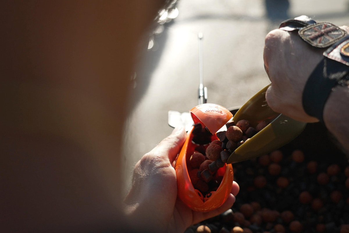 raketa základní nátěr značky Spyder, model Středně oranžová/černá, Speciál pro vnadění ze břehu při lovu kaprů.