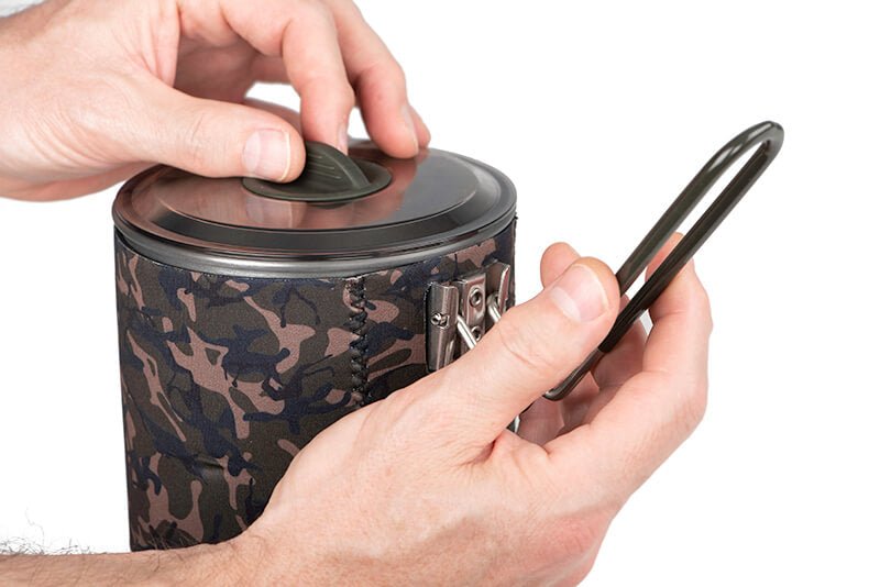 - Součástí je neoprenový návlek v barvě Camo, který může zůstat na pánvi