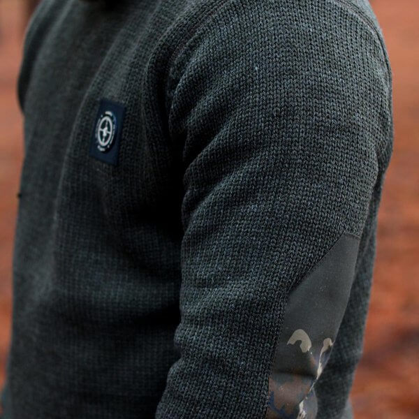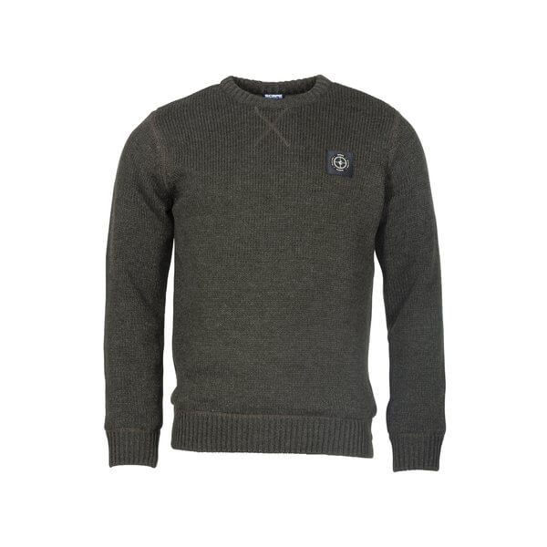 Pletený svetr značky Nash s designem Scope v barvě zelená, speciální pro lov kaprů.