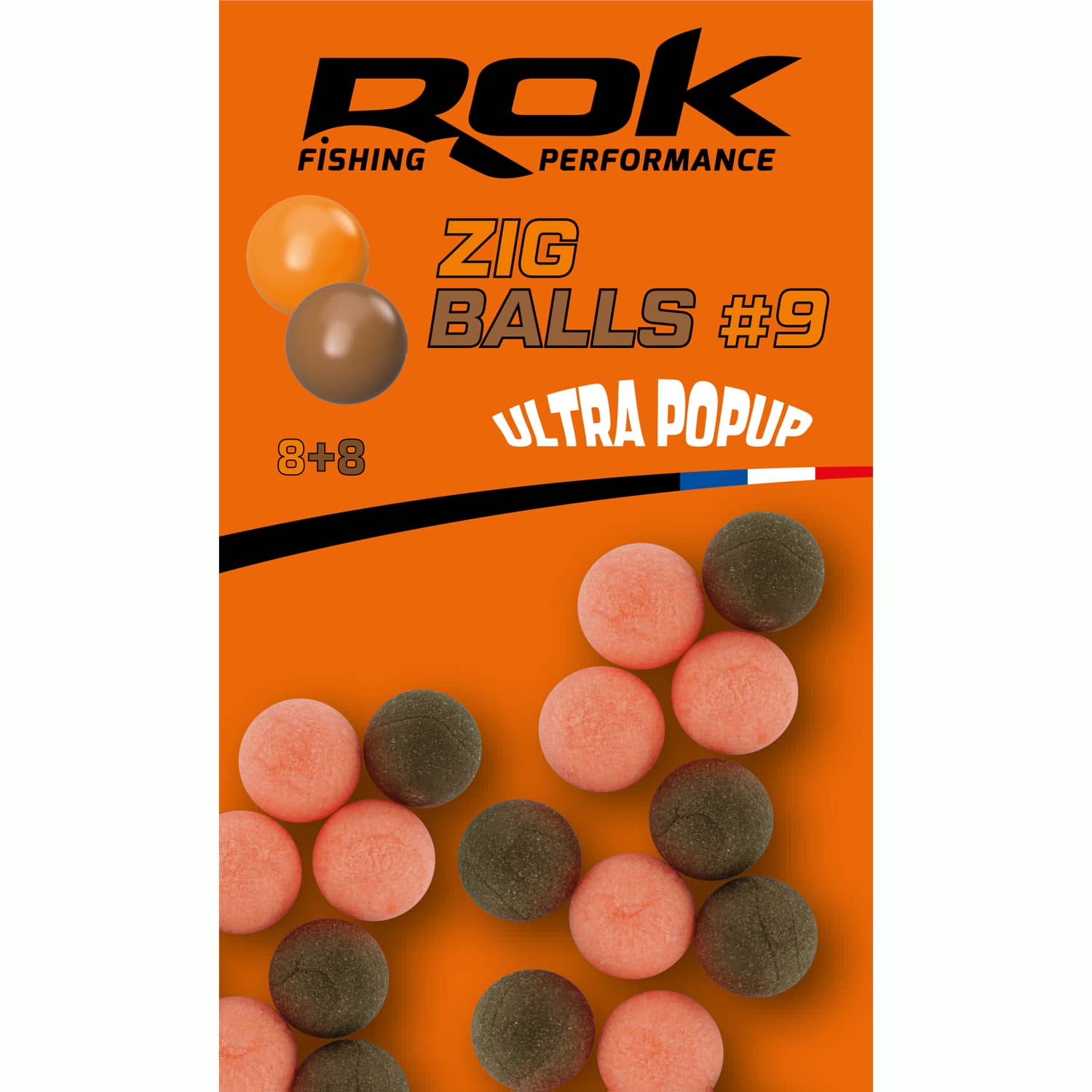Plovoucí boilie značky Rok Fishing Zig Ball z velikost 9 v barvě oranžová a hnědáspeciální pro lov kaprů.