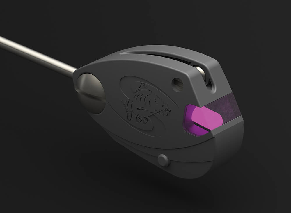 - Nastavitelný dvojitý kulový klip na vlasec, který lze použít s jakýmkoli průměrem hlavního vlasce nebo opletu. Jednoduchým otáčením malého šroubu bez hlavy nastavíte požadovaný přítlak mezi kuličkami klipu vlasce.