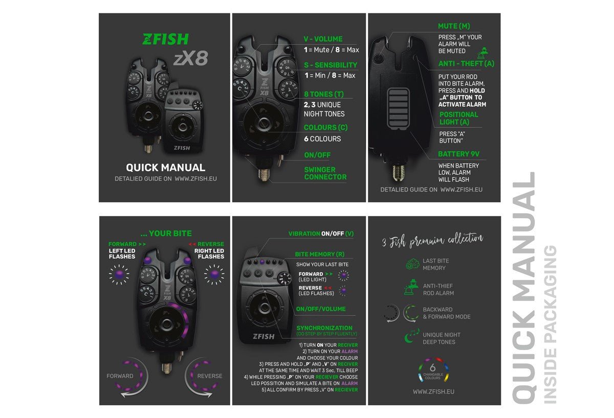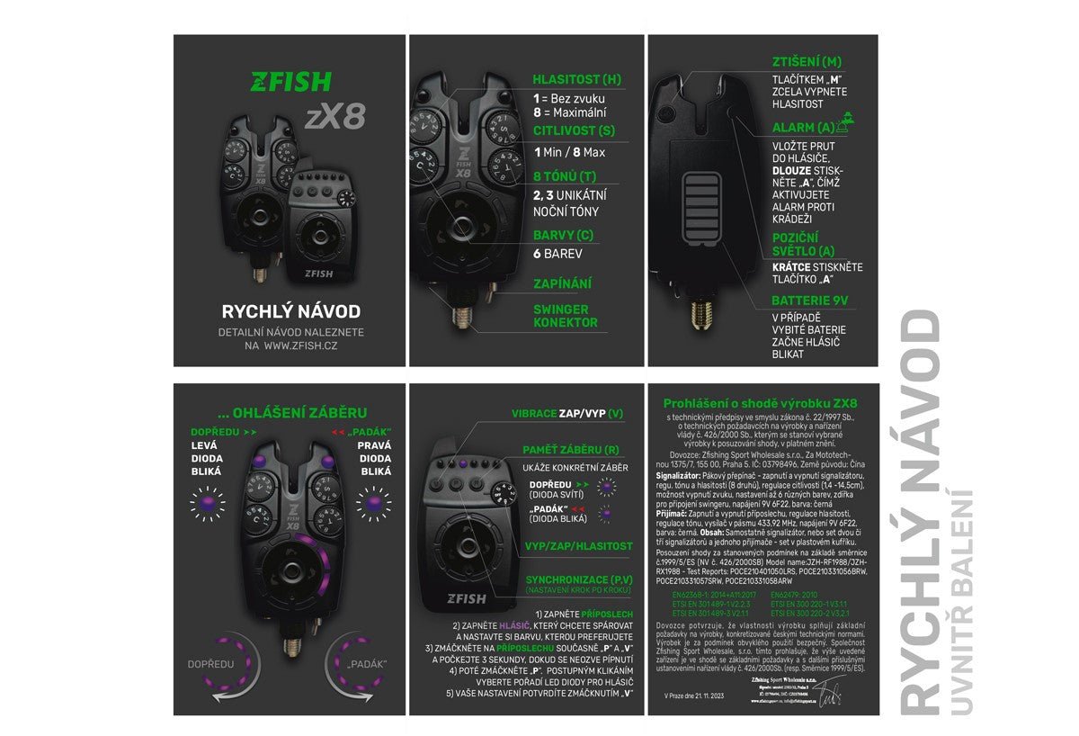 Sada 3 ks alarmů + přijímač značky Zfish, Model ZX8 Pro, speciální pro lov kaprů.