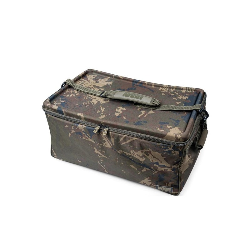 Tašky značková chladnička Nash model Subterfuge s designem kamufláž na adrese Barva zelená a velikost velký s kapacitou pro 70 litrůurčená k uchování čerstvosti nápojů a potravin, zejména při lovu kaprů.