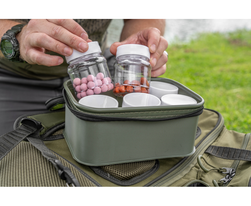 - Včetně nádob na návnady pro bezpečné uložení návnad s háčky