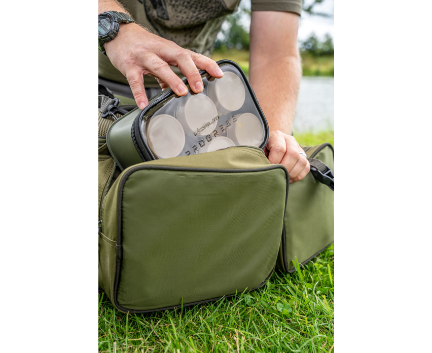 Tašky pro vábničky značky Korum, model Progress Eva, na adrese Barva zelená, určené pro skladování návnad, dipů a tekutin.