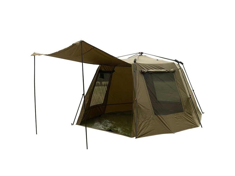 Značkový přístřešek Fox model EOS Social Shelter XL na Barva khaki, speciální pro lov kaprů.